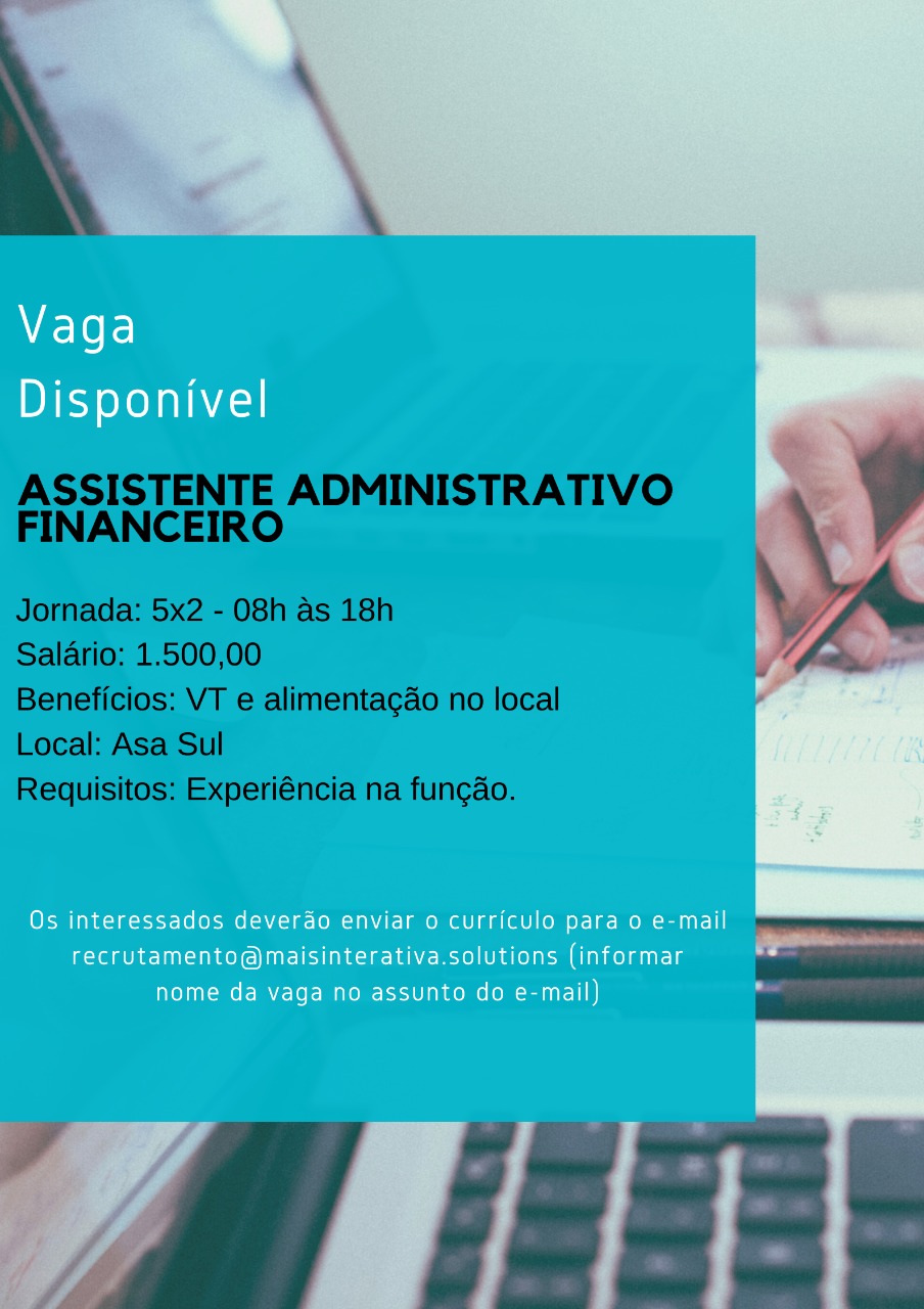 Aviso: O site não é responsável pela seleção ou contratação das vagas, o mesmo atua somente na divulgação, para que o contratante tenha um alcance maior de visualizações em suas oportunidades de empregos. É imprescindível informar que esta vaga foi encontrada no site OPORTUNIDADES DF, informe da seguinte forma: “Esta vaga foi vista no site “www.oportunidadesdf.com“.