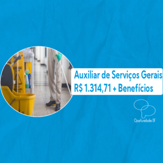 Empresa: Colégio Vaga: Auxiliar de Serviços Gerais Remuneraão: R$ 1.314,71 + VT + VA. Local: Lago Sul Jornada: Segunda à sexta 9h as 19h Interessados deverão enviar currículo para o e-mail: contato@colegiodomjosedf.com É imprescindível informar que esta vaga foi encontrada no site OPORTUNIDADES DF, informe da seguinte forma: “Esta vaga foi vista no site “www.oportunidadesdf.com“.