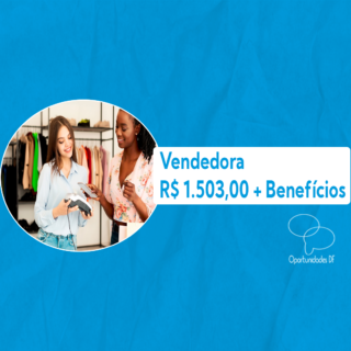 Vaga: Vendedora Remuneração: R$1.503,00 + Comissão + VT Local: Taguatinga Jornada: 08 às 18h segunda à sexta e sábado meio período Regime de Contratação: CLT Requisitos: Ensino Médio completo. – Experiência com atendimento ao público, vendas. Atividades: Atendimento ao cliente. – Bater metas e fazer captação de clientes. – Organização da loja e reposição de […]