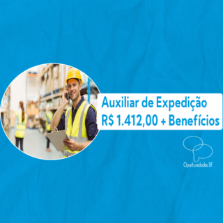 Vaga: Auxiliar de Expedição – Diurno e Noturno Remuneração: R$ 1.412,00 + Vale Transporte + Vale Refeição Local: Taguatinga Sul Descrição: Auxiliar equipe no processo de carga e descarga dos caminhões, movimentação interna dos produtos, atuar na manutenção e organização dos estoques. Jornada: Possuir veículo próprio; – Resida próximo a Taguatinga Sul; – Boa comunicação; […]