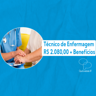 Técnico de Enfermagem – UTI e Pediatria Grupo Mantevida Presencial R$ 2.080,00 + Assistência médica + Auxílio academia + Vale-transporte Taguatinga – Brasília, DF, BR 12X36 de 7h às 19h Profissional • Efetivo – CLT Descrição e Responsabilidades Participar da passagem de plantão entre turnos na UTI; Organizar leito do paciente para admissão; Participar do […]