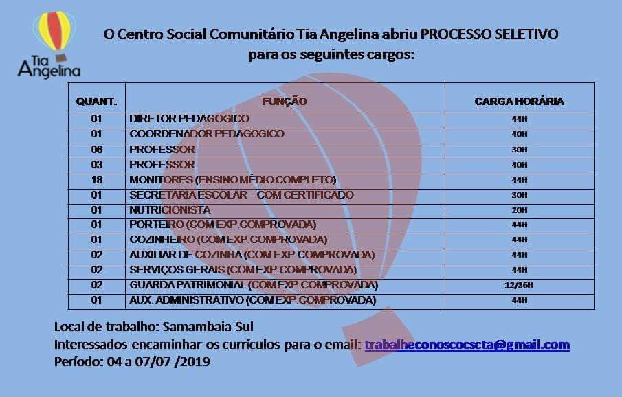 Aviso: O site não é responsável pela seleção ou contratação das vagas, o mesmo atua somente na divulgação, para que o contratante tenha um alcance maior de visualizações em suas oportunidades de empregos. É imprescindível informar que esta vaga foi encontrada no site OPORTUNIDADES DF, informe da seguinte forma: “Esta vaga foi vista no site “www.oportunidadesdf.com“.