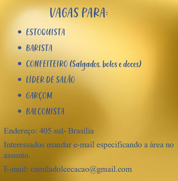 AVISO: O site Oportunidades DF tem como único objetivo divulgar vagas de emprego e com isso ajudar tanto quem está à procura de emprego, quanto quem busca contratar. Porém, o mesmo não é responsável e nem atua na seleção ou contratação das vagas. e por isso, toda a responsabilidade das vagas anunciadas são das empresas ou encarregadas(os) do RH que nos repassam as oportunidades de emprego. Em caso de uma vaga falsa ou uma fraude, solicitamos que nos contate imediatamente.