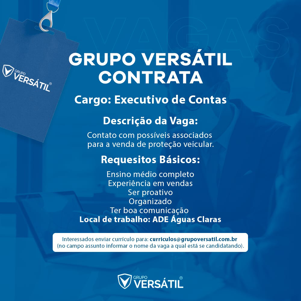 Aviso: O site Oportunidades DF tem como único objetivo divulgar vagas de emprego e com isso ajudar tanto quem está na procura de emprego, quanto quer contratar. Porém o mesmo não é responsável e nem atua na seleção ou contratação das vagas e por isso toda responsabilidade das vagas anunciadas são das empresas ou encarregados de rh que nos repassam as oportunidades de emprego. Em caso de uma vaga falsa ou uma fraude, nos contate imediatamente. É imprescindível informar que esta vaga foi encontrada no site OPORTUNIDADES DF, informe da seguinte forma: “Esta vaga foi vista no site “www.oportunidadesdf.com“.