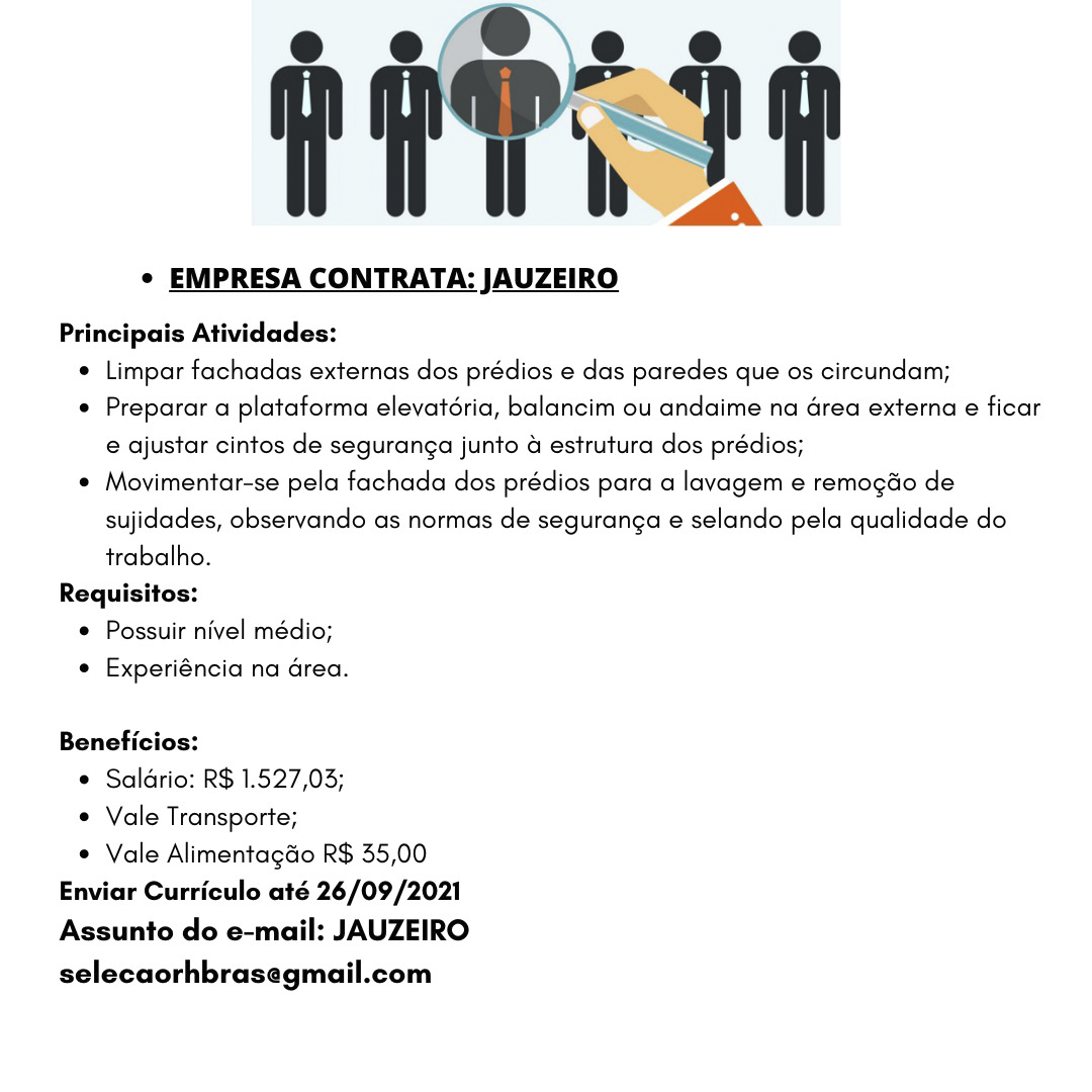 Aviso: O site Oportunidades DF tem como único objetivo divulgar vagas de emprego e com isso ajudar tanto quem está na procura de emprego, quanto quer contratar. Porém o mesmo não é responsável e nem atua na seleção ou contratação das vagas e por isso toda responsabilidade das vagas anunciadas são das empresas ou encarregados de rh que nos repassam as oportunidades de emprego. Em caso de uma vaga falsa ou uma fraude, nos contate imediatamente. É imprescindível informar que esta vaga foi encontrada no site OPORTUNIDADES DF, informe da seguinte forma: “Esta vaga foi vista no site “www.oportunidadesdf.com“.