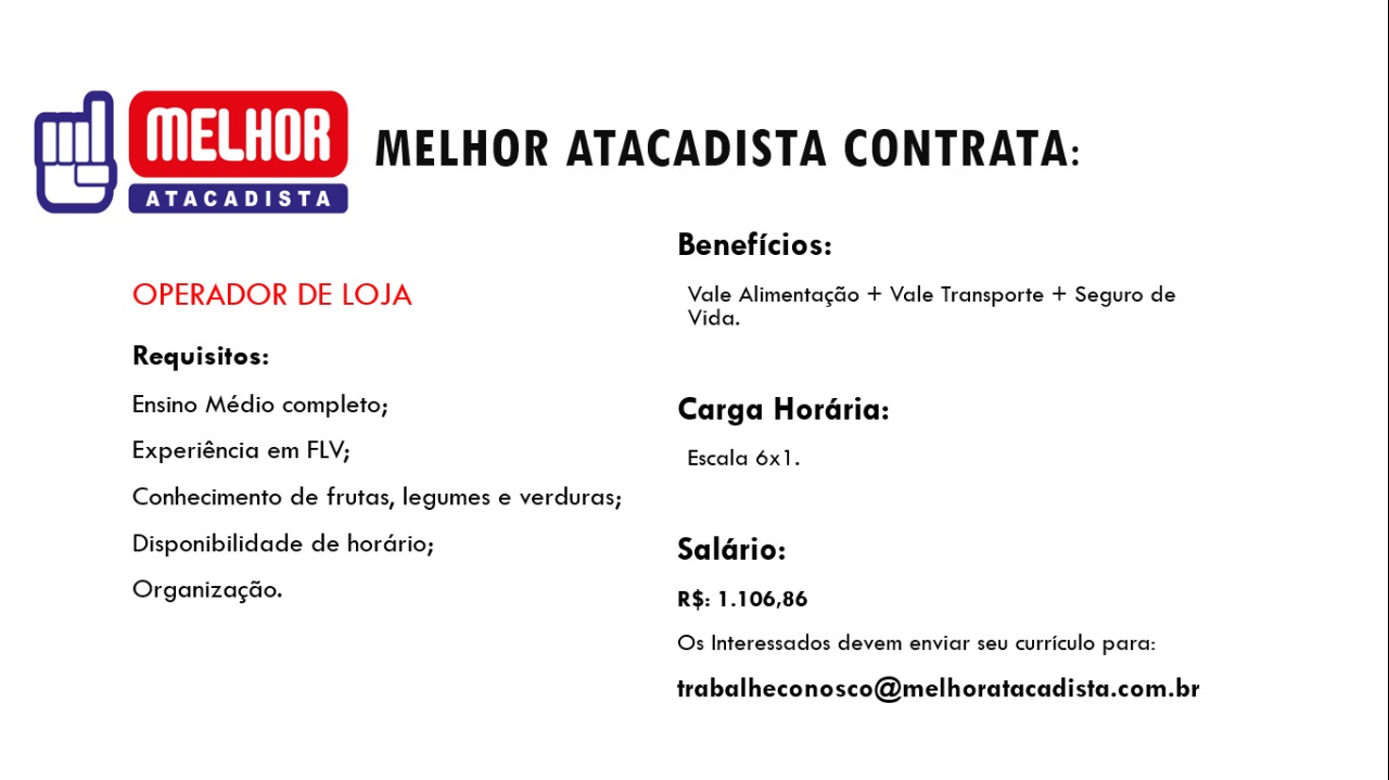 Aviso: O site Oportunidades DF tem como único objetivo divulgar vagas de emprego e com isso ajudar tanto quem está na procura de emprego, quanto quer contratar. Porém o mesmo não é responsável e nem atua na seleção ou contratação das vagas e por isso toda responsabilidade das vagas anuciadas são das empresas ou encarregados de rh que nos repassam as oportunidades de emprego. Em caso de uma vaga falsa ou uma fraude, nos contate imediatamente. É imprescindível informar que esta vaga foi encontrada no site OPORTUNIDADES DF, informe da seguinte forma: “Esta vaga foi vista no site “www.oportunidadesdf.com“.