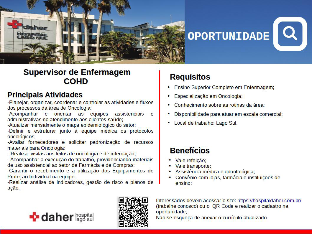 AVISO: O site Oportunidades DF tem como único objetivo divulgar vagas de emprego e com isso ajudar tanto quem está à procura de emprego, quanto quem busca contratar. Porém, o mesmo não é responsável e nem atua na seleção ou contratação das vagas. e por isso, toda a responsabilidade das vagas anunciadas são das empresas ou encarregadas(os) do RH que nos repassam as oportunidades de emprego. Em caso de uma vaga falsa ou uma fraude, solicitamos que nos contate imediatamente.