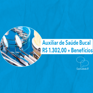 Empresa: Clínica Odontológica Vaga: Auxiliar de Saúde Bucal Remuneração: R$ 1.302,00 + 20% de Insalubridade + Vale Transporte + Vale Refeição Local: Águas Claras Jornada: Segunda a sexta, 09:00 às 19:00 e aos sábados alternados das 08:30 às 12:30 Requisitos: Estar inscrito no CRO; – Ter experiência em auxiliar cirurgias odontológicas,; – Conhecer os instrumentos […]
