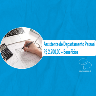 Assistente de Departamento Pessoal(R$ 2.700,00) 13-06-2023