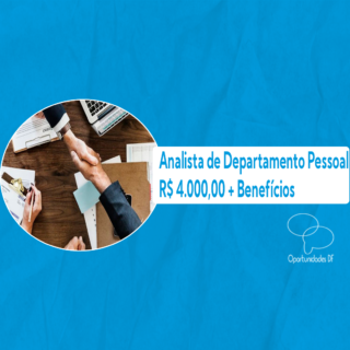 Vaga: Auxiliar de Manutenção Remuneração: R$ 1.302,00 + VT + VR + Plano de Saúde e Odontológico Local: Asa Sul – DF Jornada: 08:00 às 18:00 (segunda à sexta) Atividades: rotinas de manutenção predial básica como: troca de lâmpadas, pinturas, mudanças entre unidades, reparo em portas/mesas/gavetas, consertos de torneiras entre outras atividades do cargo; Requisitos: […]