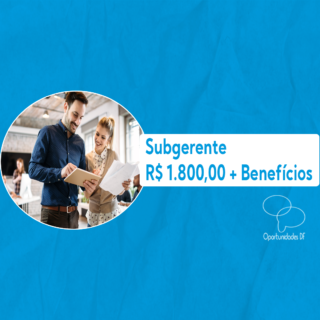 Subgerente soma desenvolvimento Presencial R$ 1.800,00 + Refeição no local + Vale-transporte Brasília, DF, BR : Segunda-feira a sábado 13h40 às 22h, domingos e feriados 14h às 20h. Uma folga na semana e um domi Profissional • Efetivo – CLT Descrição e Responsabilidades Atendimento ao público e venda de mercadorias; Liderança da equipe; Limpeza e […]