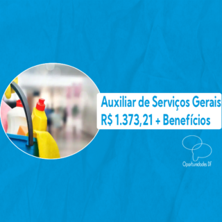Vaga: Auxiliar de Serviços Gerais Remuneração: R$ 1.373,21 + vale transporte + vale alimentação Local: CLN 202, Asa Norte Horário: De terça a sexta, das 7h às 18h. Sábados, das 7h às 15h. Regime de Contratação: CLT Atividades: – Limpar todas as áreas da loja; – Limpar os móveis da loja; – Manter a organização […]