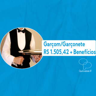 Empresa: Mercearia Choperia Vaga: Garçom Remuneração: R$ 1.400,00 (+ Comissão) + Vale Transporte + Alimentação no local Local: Asa Norte Descrição: Atender clientes, servir, organizar salão. Jornada: Terça a domingo, 09:00 às 17:00 ou 16:00 às 00:00 Requisitos: Ensino médio completo; – Seja honesto, proativo e tenha uma boa comunicação. Interessados deverão enviar currículo para […]