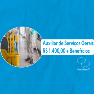 Vaga: Auxiliar de Serviços Gerais Remuneração: R$ 1.400,00 + Vale Transporte + Auxílio Refeição Local: Asa Norte Jornada: Segunda a sexta, 09:00 às 19:00 e aos sábados das 08:00 às 12:00 Requisitos: Experiência na área será um diferencial. Interessados deverão enviar currículo para o e-mail: vagas@escoladna.com.br É imprescindível informar que esta vaga foi encontrada no […]