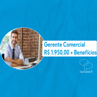 Vaga: Gerente Comercial Remuneração: R$ 1.950,00 + Comissão (Média de R$ 3.500,00) + Vale Transporte + Auxílio Alimentação Local: Asa Sul Desrição: Realizar o acompanhamento do desempenho do vendedor e da cobrança de meta. – Auxiliar no processo administrativo de recursos humanos; – Realizar atendimentos quando necessário; – Assegurar o cumprimento das normas da empresa; […]