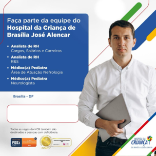 Emoresa: Hospital da Crianca de Brasilia Vaga: Analista de RH (Cargos, Salários e Carreiras) – Analista de RH (R&S – Médico(a) Pediatra (Nefrologia) – Médico(a) Pediatra(Neurologista) ME INSCREVER