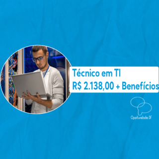 Tecnico de Suporte Família do Sítio Presencial R$ 2.600,00 + Assistência odontológica + Celular corporativo + Convênio farmácia + Crédito consignado + Estacionamento + Eventos internos + Ginástica laboral + Kit de Produtos + Parceria com papelaria + Parceria SESC + Parceria SESI + Parcerias com academias + Parcerias com faculdades + Refeição no local […]