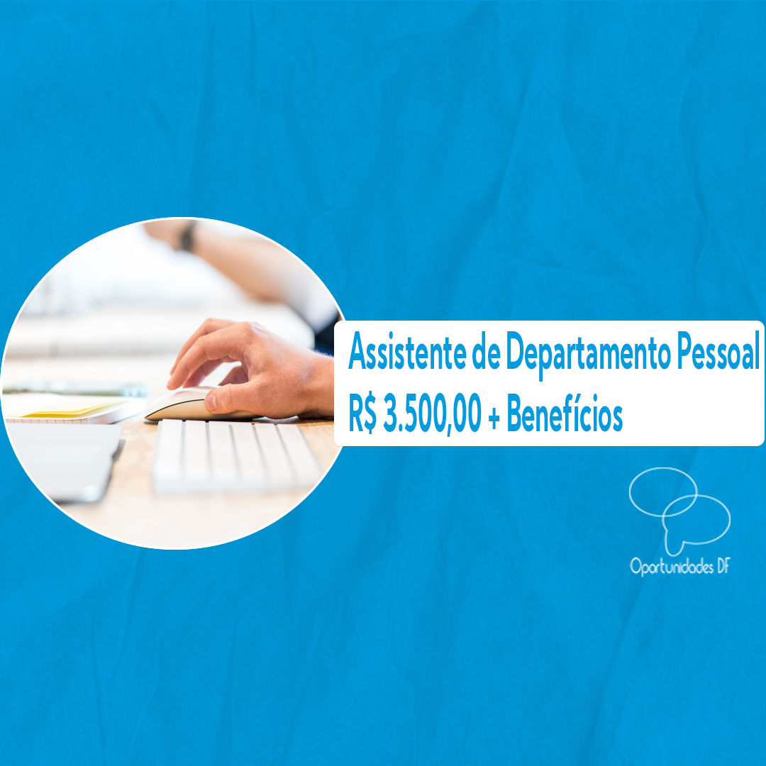Assistente de Departamento Pessoal Talentize Presencial R$ 2.800,00 até R$ 3.500,00 + Vale-alimentação + Vale-refeição Lago Sul – Brasília, DF,