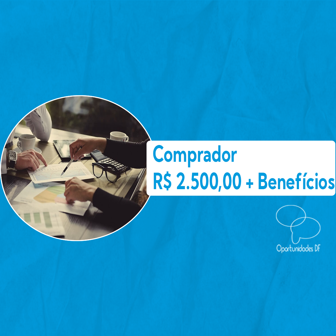 Vaga: Comprador Remuneração: R$ 2.500,00 + Vale Transporte + Alimentação no local Local: Águas Claras Jornada: 07:30 às 17:30 Requisitos: