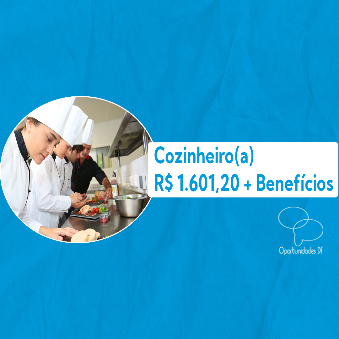 Empresa: Pudincrivel Vaga: Cozinheiro(a) Remuneração: R$ 1.601,20 + Vale Transporte + Vale Alimentação Local: Águas Claras Descrição: Realizar a limpeza