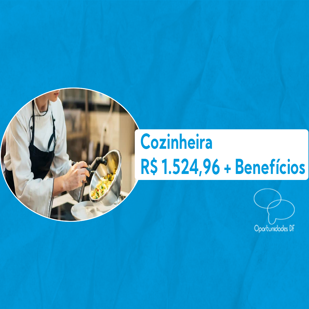 Vaga: Cozinheira Quantidade de vagas: 01 Remuneração: R$ 1.524,96 + 76,24 de produtividade + VT em dinheiro + Seguro de