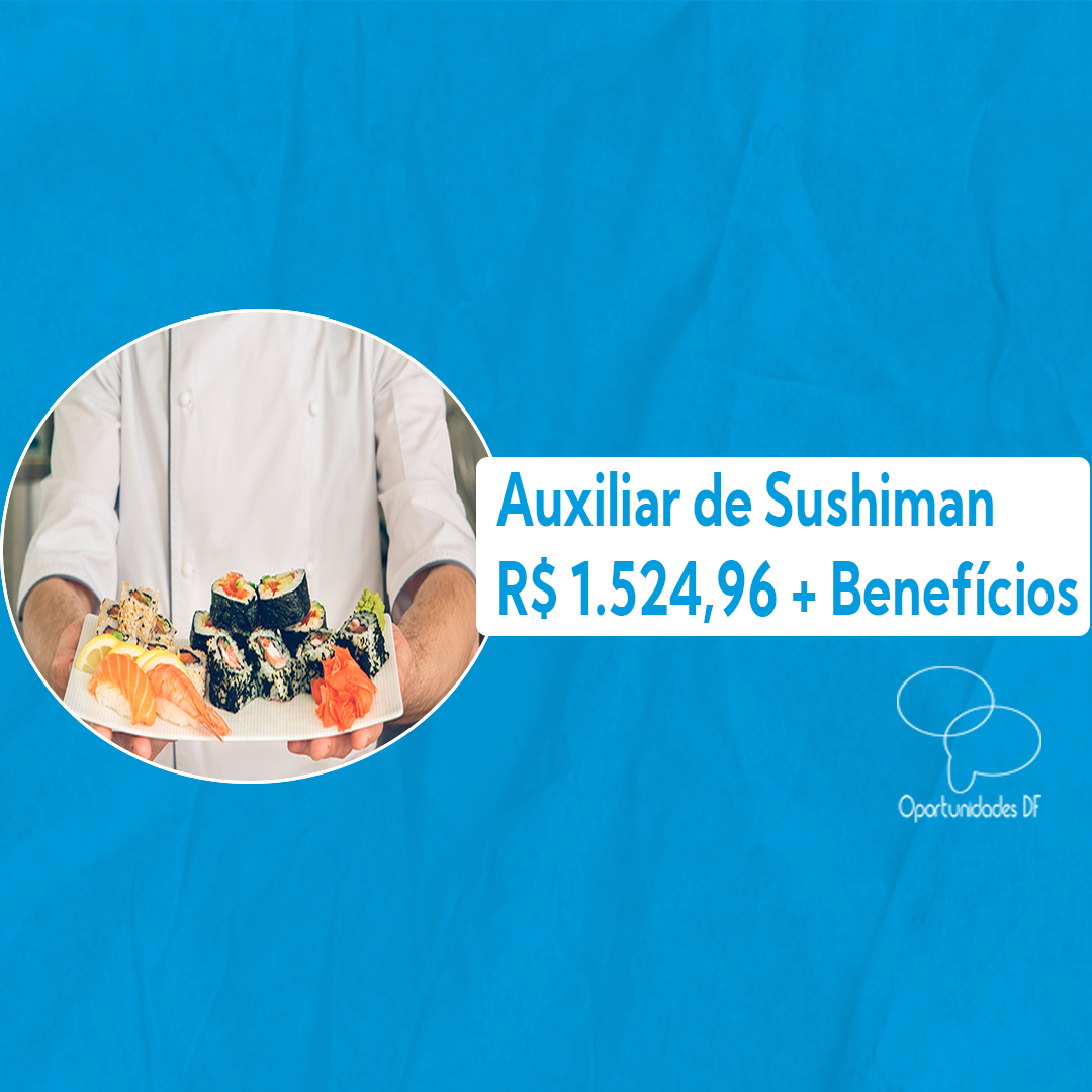 Empresa: Sushiloko Vaga: Auxiliar de Sushiman Remuneração: R$ 1.524,96 + 5% de Produtividade + Vale Transporte + Alimentação no local