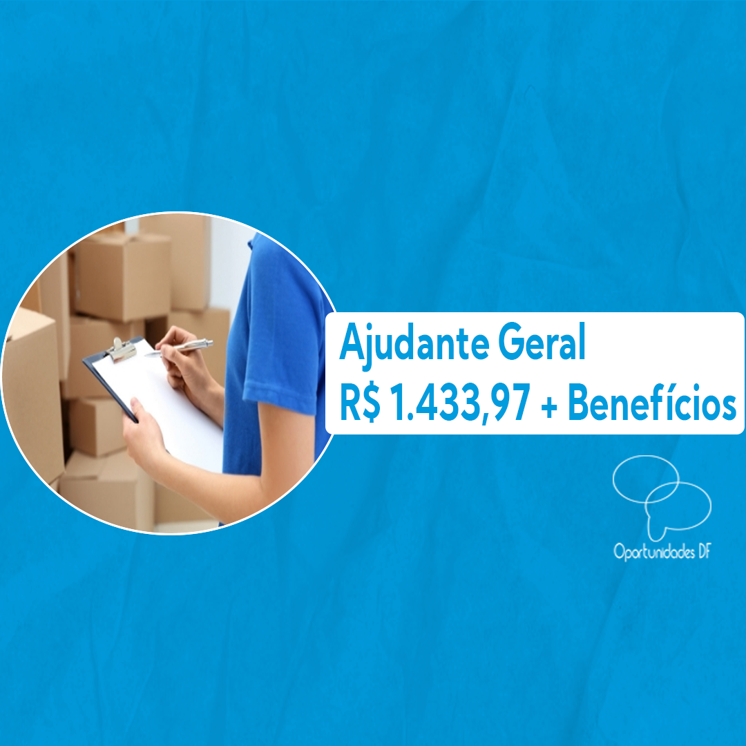Vaga: Ajudante Geral Quantidade de vagas: 4 Remuneração: R$ 1.433,97 + Cesta básica após 2 mês de trabalho + PRL