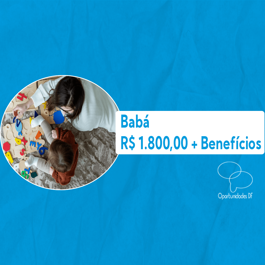 Vaga: Babá Remuneração: R$ 1.320,00 – R$ 1.800,00 Local: Guará Descrição: Cuidar uma criança de 6 anos no turno da