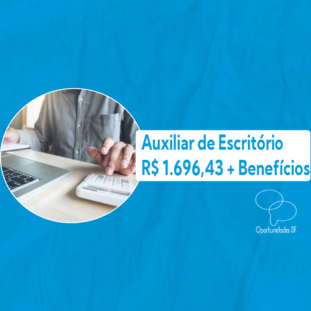Vaga: Auxiliar de Escritório Quantidade de Vagas: 02 Remuneração: R$ 1.696,43 + Vale refeição + Vale transporte + Cesta Básica