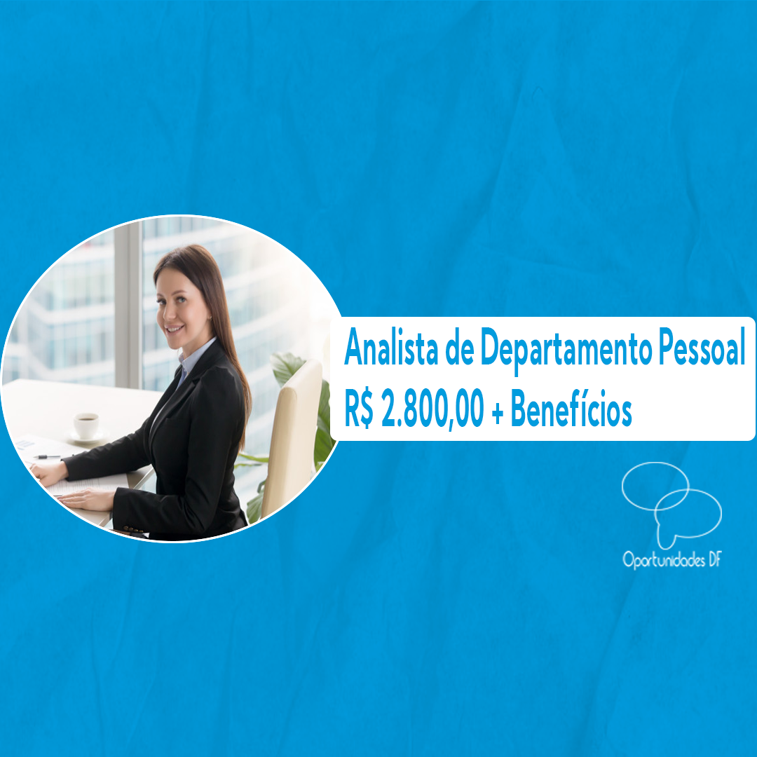 Analista de Departamento Pessoal EMPRESA CONFIDENCIAL Presencial R$ 2.800,00 + Assistência médica + Transporte + Vale-alimentação Plano Piloto – Brasília,