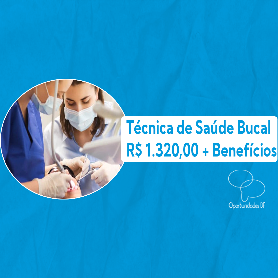 Vaga: Técnica de Saúde Bucal Remuneração: R$ 1.320,00 + Insalubridade + Vale Alimentação + Vale Transporte + Gratificação Local: Planaltina