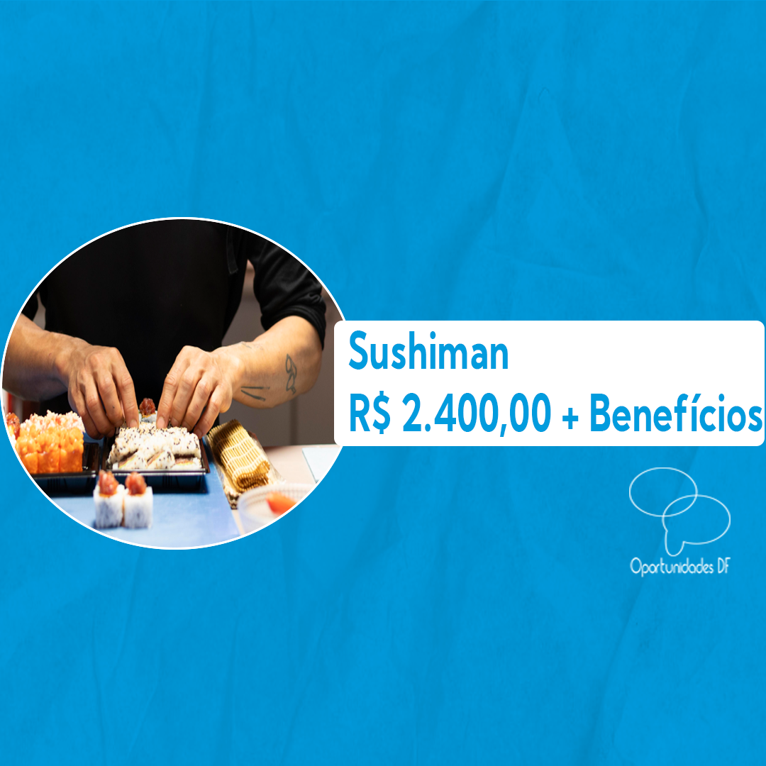 Empresa: China Sushi Vaga: Sushiman Remuneração: R$ 2.000,00 – R$ 2.400,00 + Vale Transporte + Alimentação no local Local: Águas