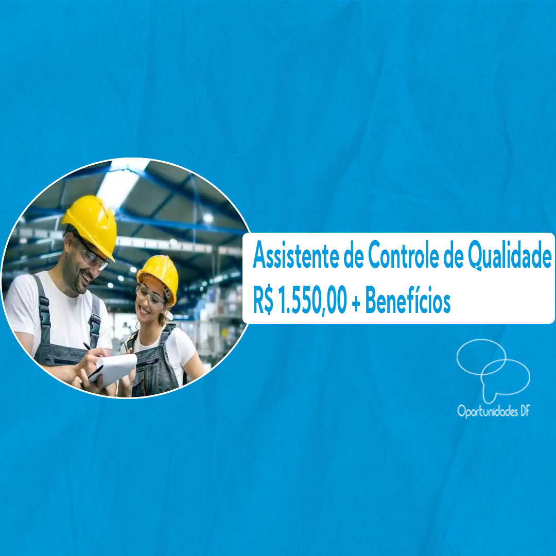 Vaga: Assistente de Controle de Qualidade Remuneração: R$ 1.550,00 + Vale Transporte + Vale Alimentação. Local: SAAN Requisitos: Ensino médio