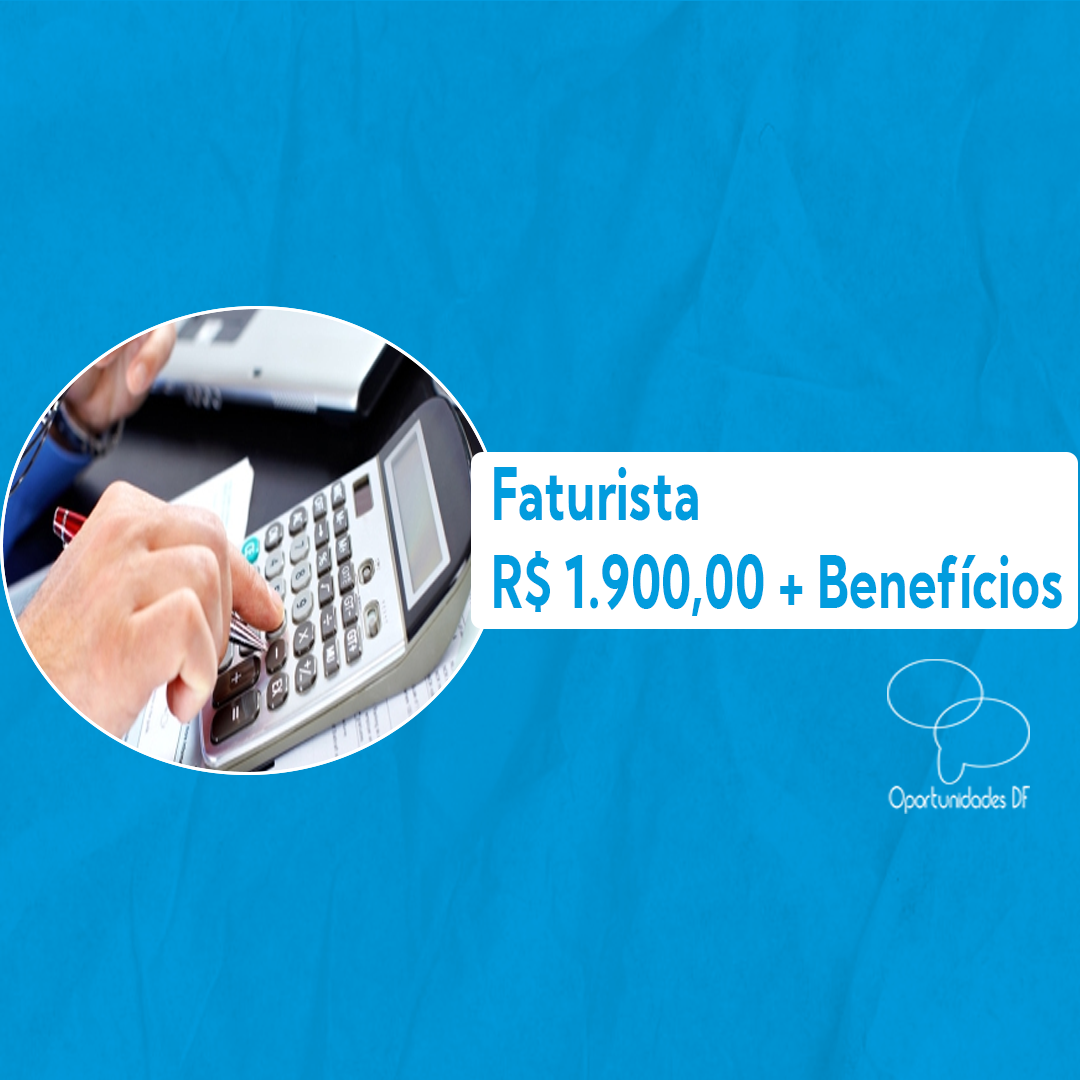 Vaga: Faturista Remuneração: R$ 1.900,00 + Vale Transporte + Vale Alimentação + Plano de Saúde + Gympass Local: Lago Sul