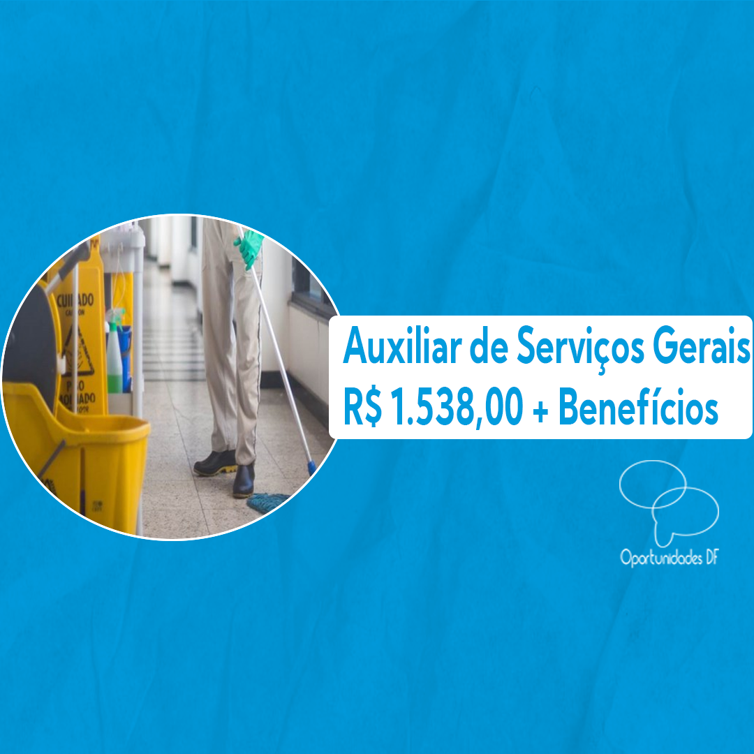 Vaga: Auxiliar de Serviços Gerais Remuneração: R$1.538,00 + VA R$26,00 + Vale Transporte + Plano de Saúde e odontológico após