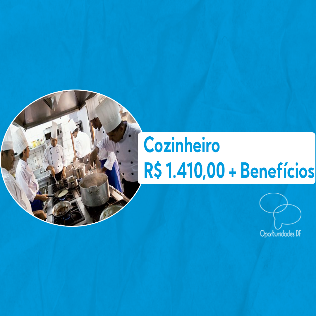 Vaga: Cozinheiro Remuneração: R$ 1.410,00 + Bonificação + Vale Transporte + Alimentação no local Local: Vicente Pires Jornada: Escala 6×1,