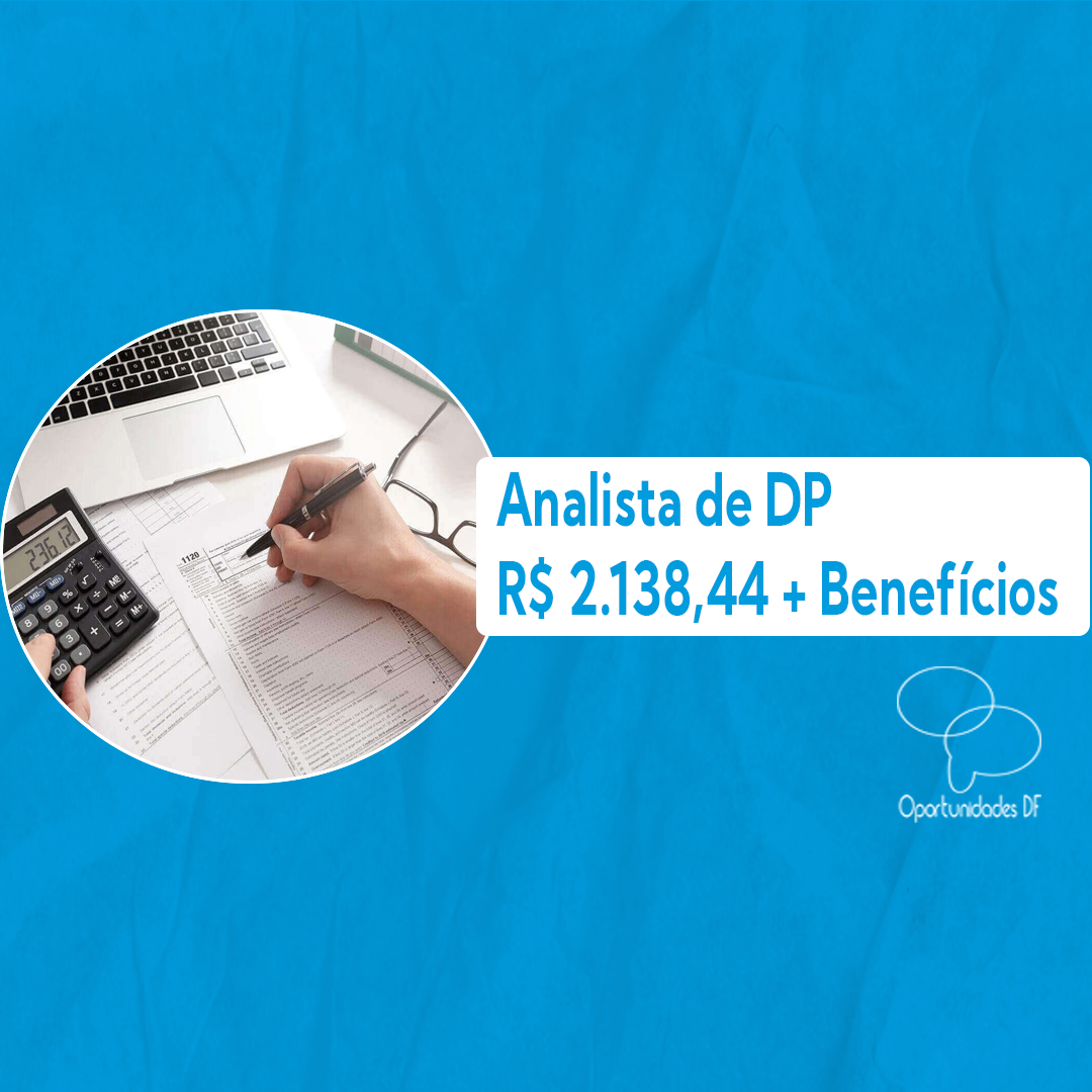 Analista de DP EMPRESA CONFIDENCIAL Presencial R$ 2.138,44 + Auxílio academia + Day Off (Aniversário) + Vale-alimentação + Vale-transporte Taguatinga