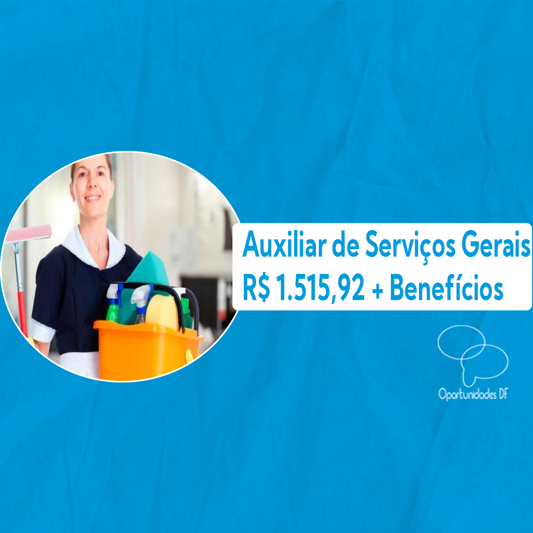 Empresa: BSSF Vaga: Auxiliar de Serviços Gerais Remuneração: R$ 1.515,92 + Vale Transporte + Vale Refeição (R$ 40,50/Dia) Local: Águas