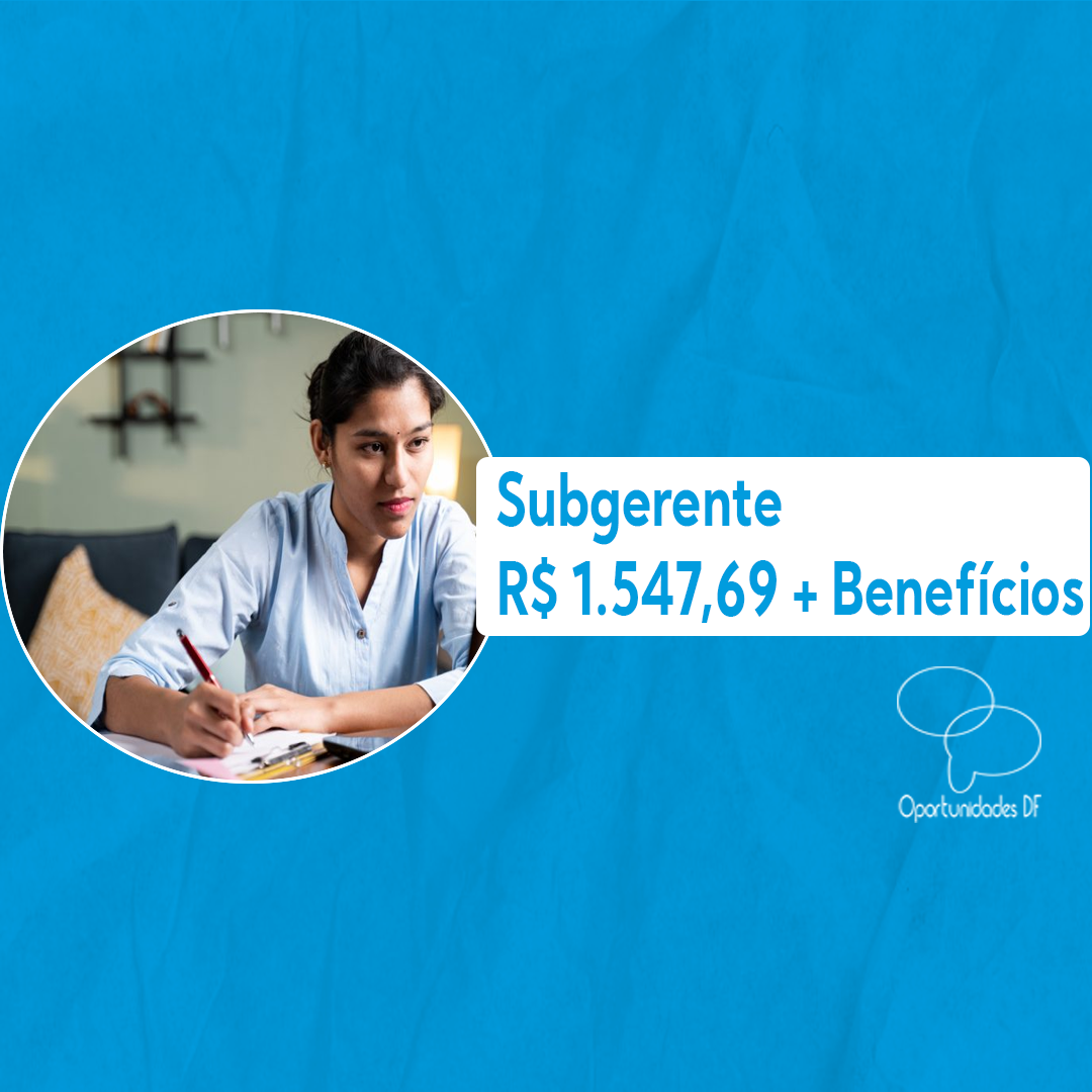Vaga: Subgerente Remuneração: R$ 1.547,69 + 5% de Produtividade + Vale Refeição (R$ 28,00/Dia) + Vale Transporte + Plano Odontológico