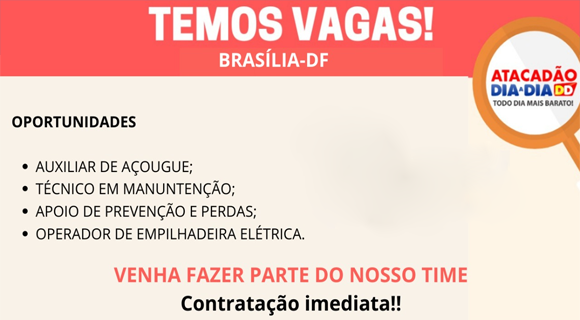 Aviso: O site Oportunidades DF tem como único objetivo divulgar vagas de emprego e com isso ajudar tanto quem está